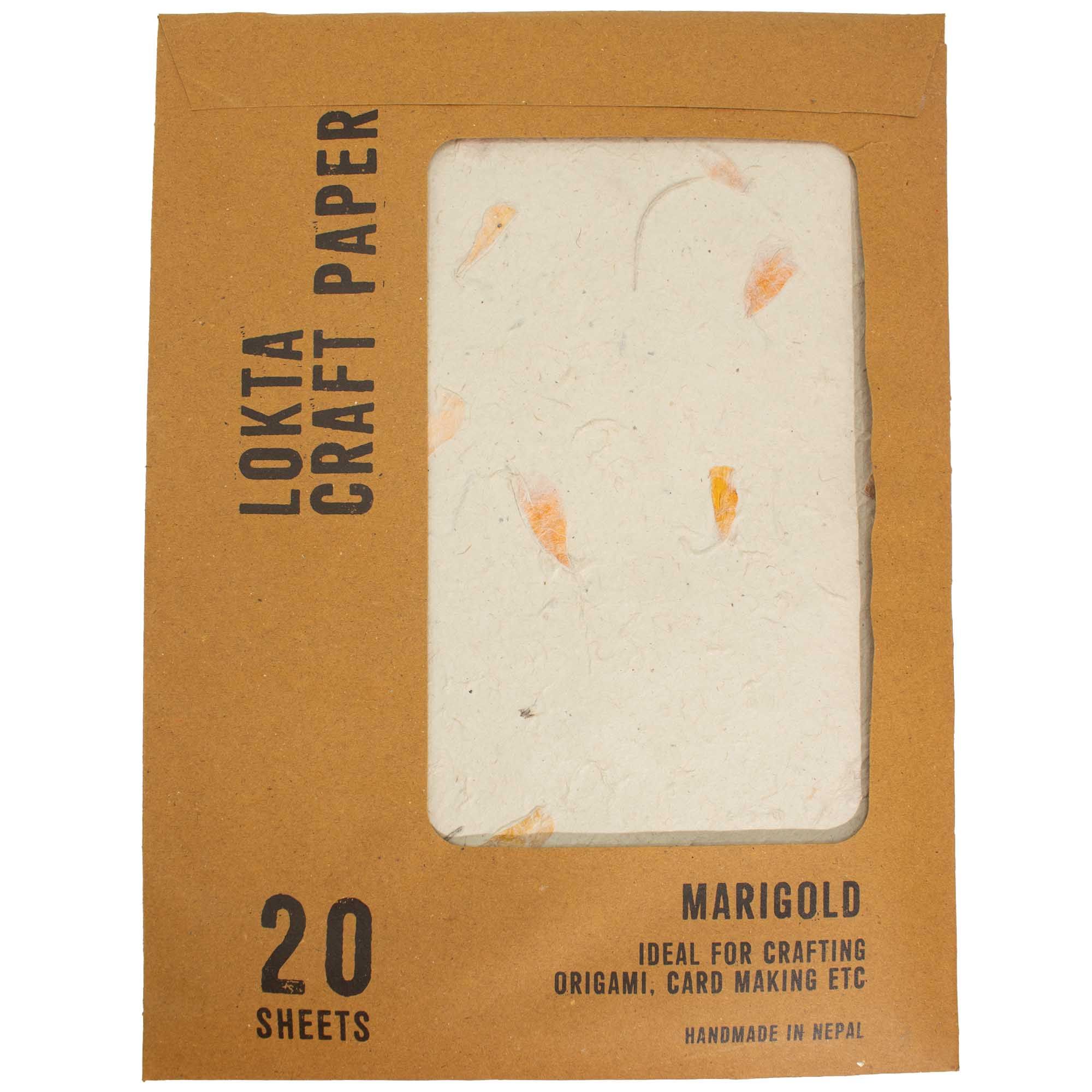 Add a natural floral touch to your crafts with this A4 Lokta Craft Paper in a marigold petal design. Handmade in Nepal, each sheet features visible pressed petals set within a soft, textured base for a beautifully organic finish.