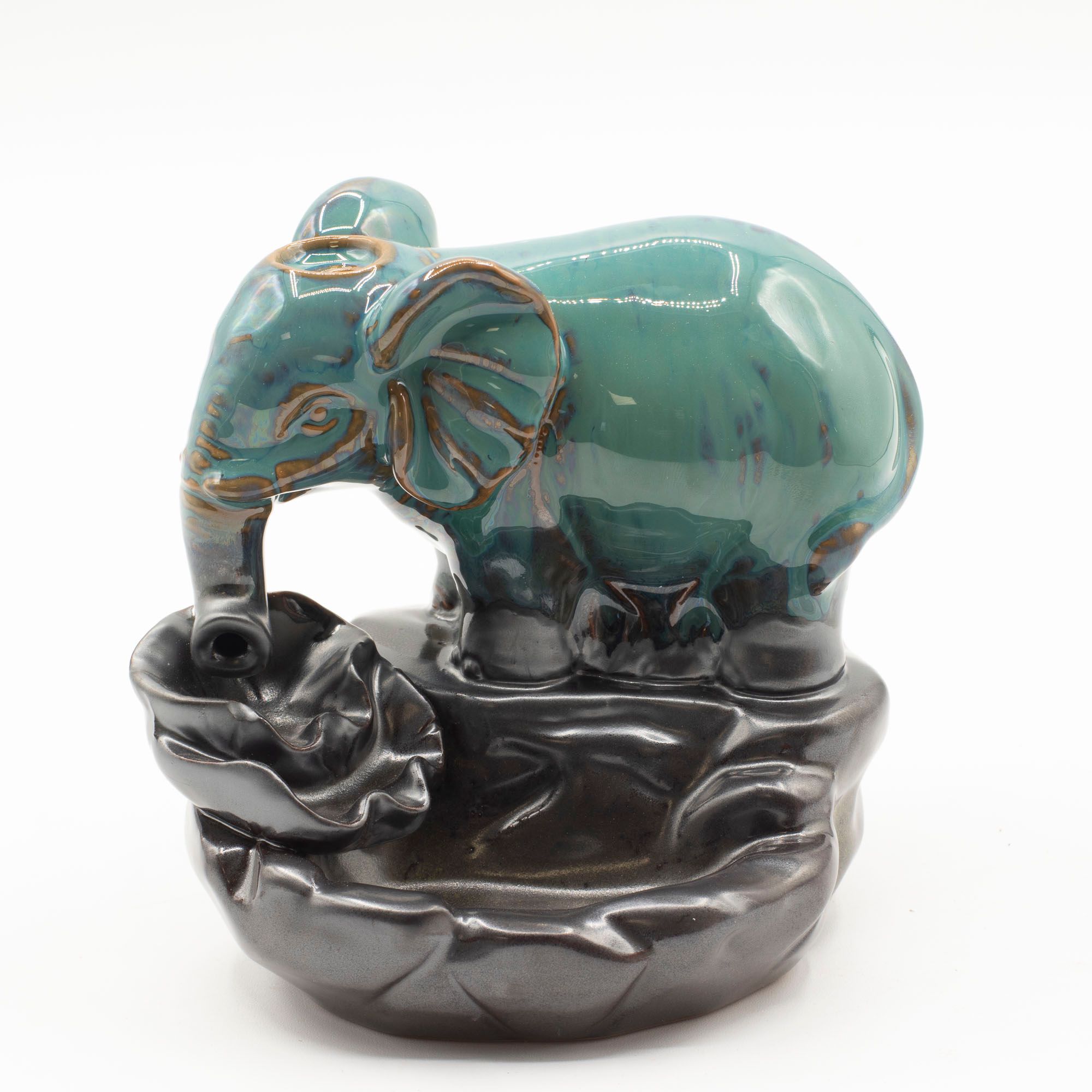 Create a calm, flowing atmosphere with this Elephant at Pool backflow incense burner. Designed for use with backflow incense cones, it produces a soothing waterfall effect as smoke gently cascades from the elephant into the pool below.