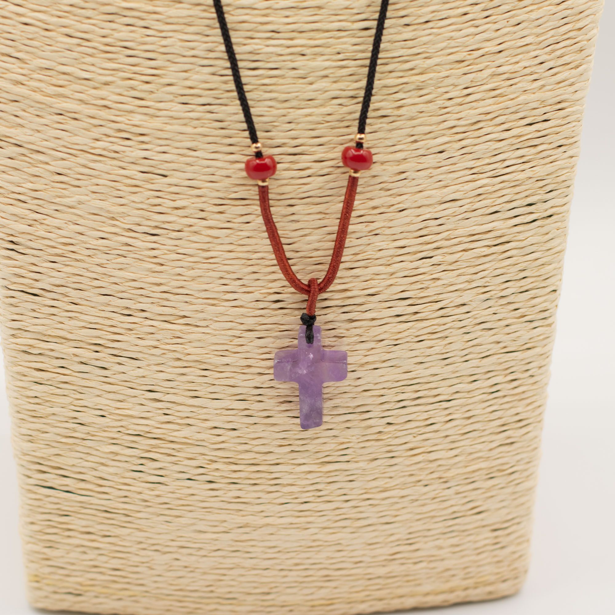 A simple piece with quiet presence. This adjustable cord necklace features a real amethyst gemstone shaped into a classic cross, bringing soft lilac tones and natural variation that make every pendant feel personal and unique.