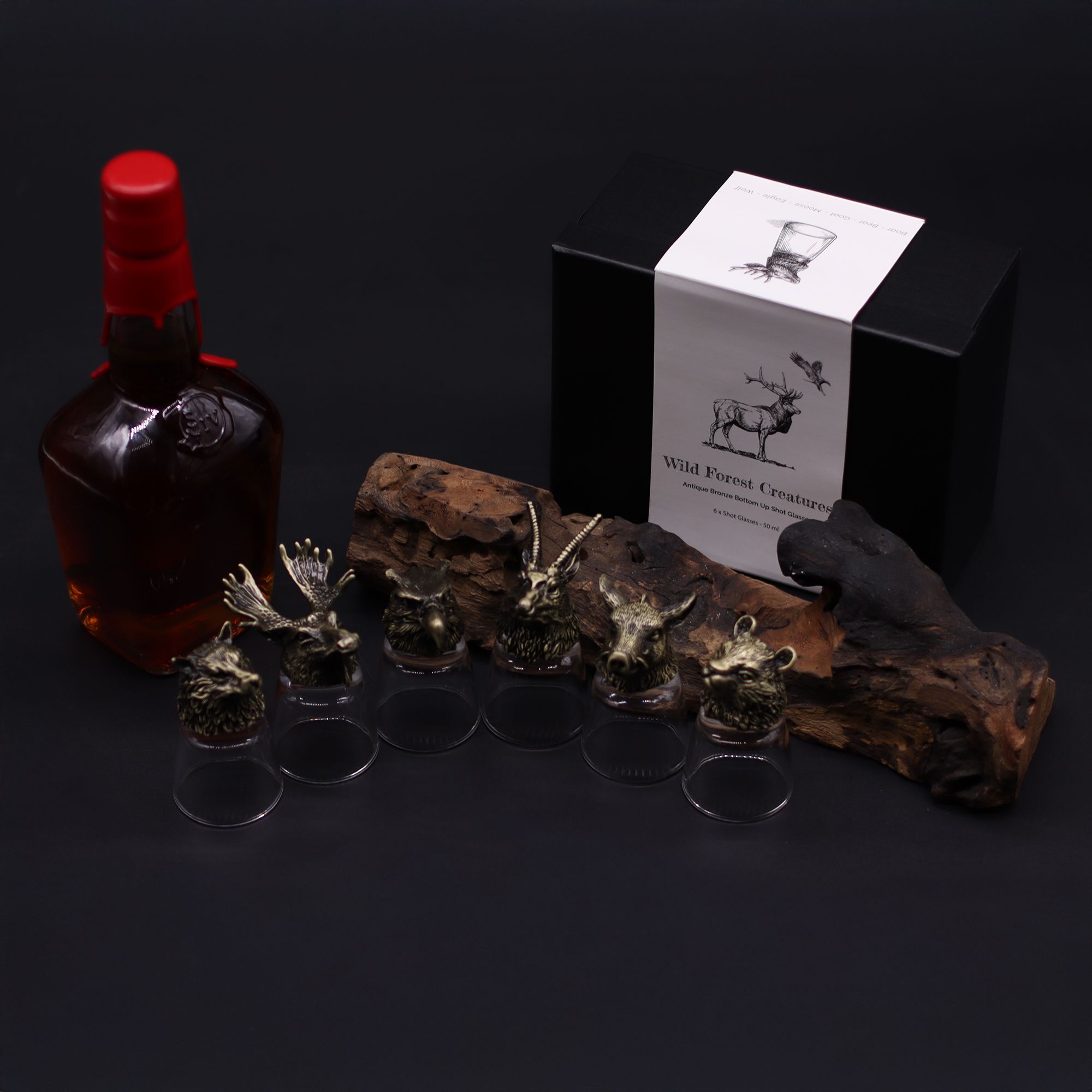 Gift Set of 6 Shot Glasses (50ml) – Wild Forest Creatures – Antique Bronze