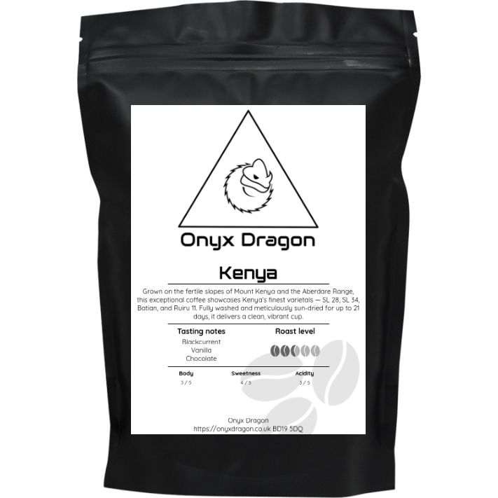 Grown on the fertile slopes of Mount Kenya and the Aberdare Range, this exceptional coffee showcases Kenya’s finest varietals — SL 28, SL 34, Batian, and Ruiru 11.