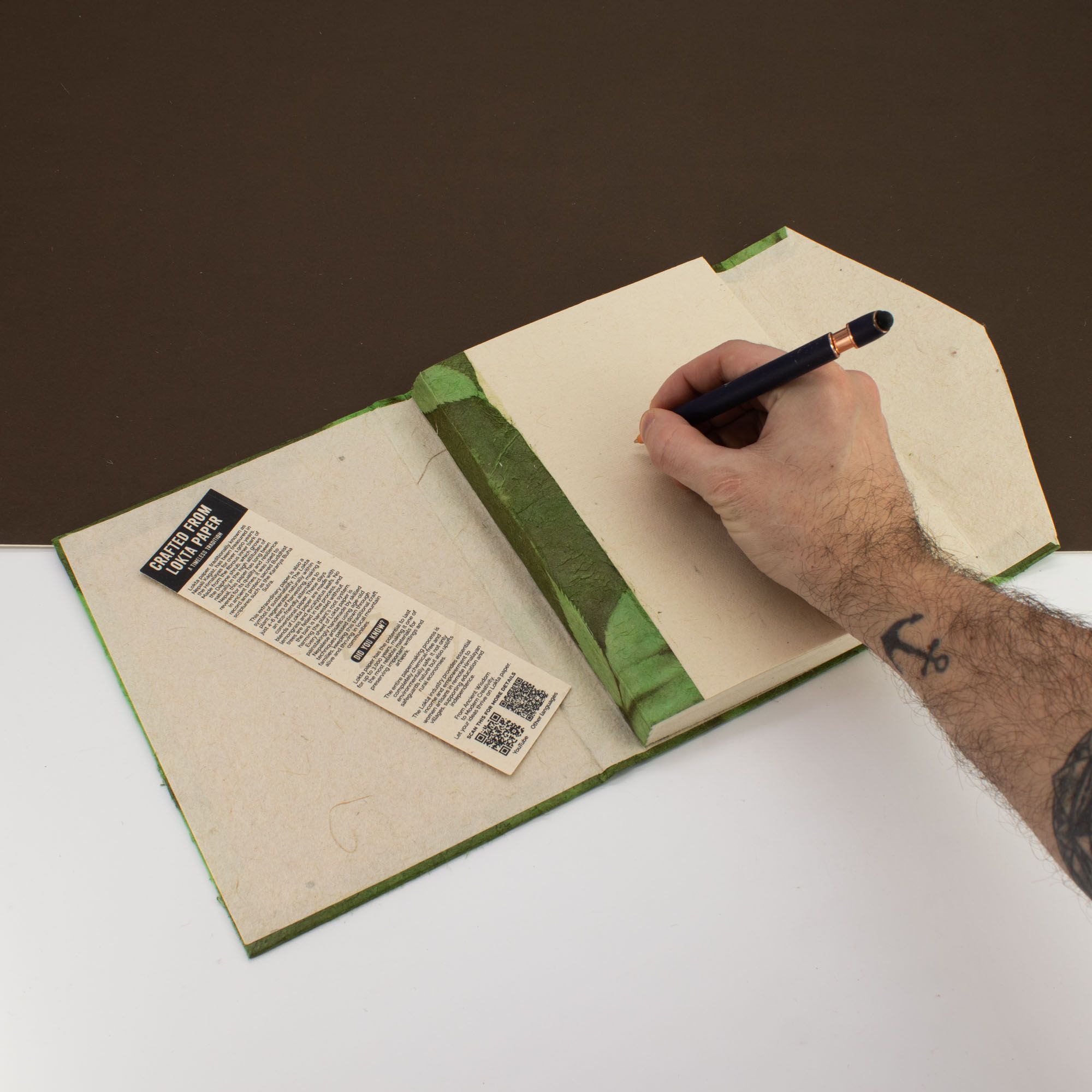 A beautifully earthy notebook that brings nature into everyday writing. The moss green cover with bold floral details gives it a calm, handcrafted feel, while the large format offers plenty of space for notes, journalling or creative ideas.