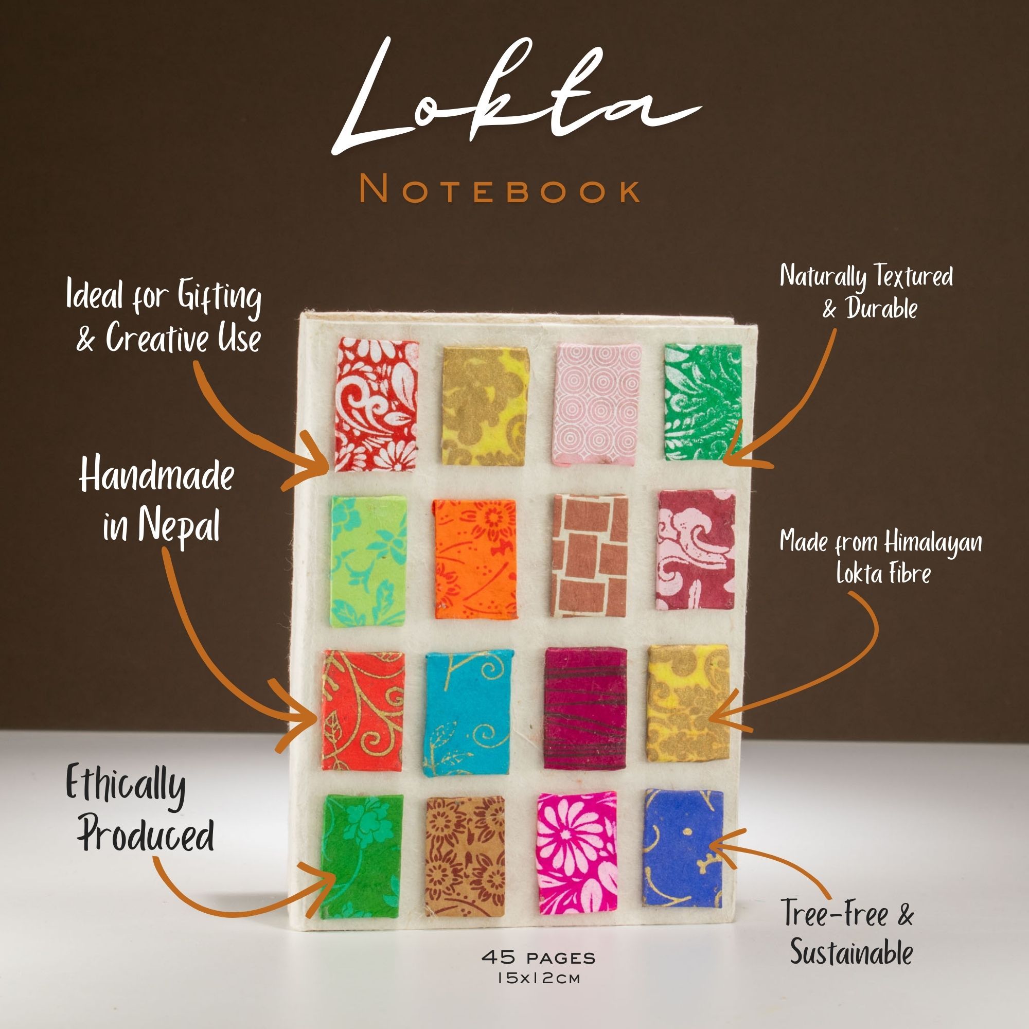 Bright miniature tile patterns set against a natural-toned cover give this notebook a playful, handcrafted look. Compact and easy to carry, it’s perfect for everyday notes, ideas or sketches, adding a little colour and creativity to your routine.