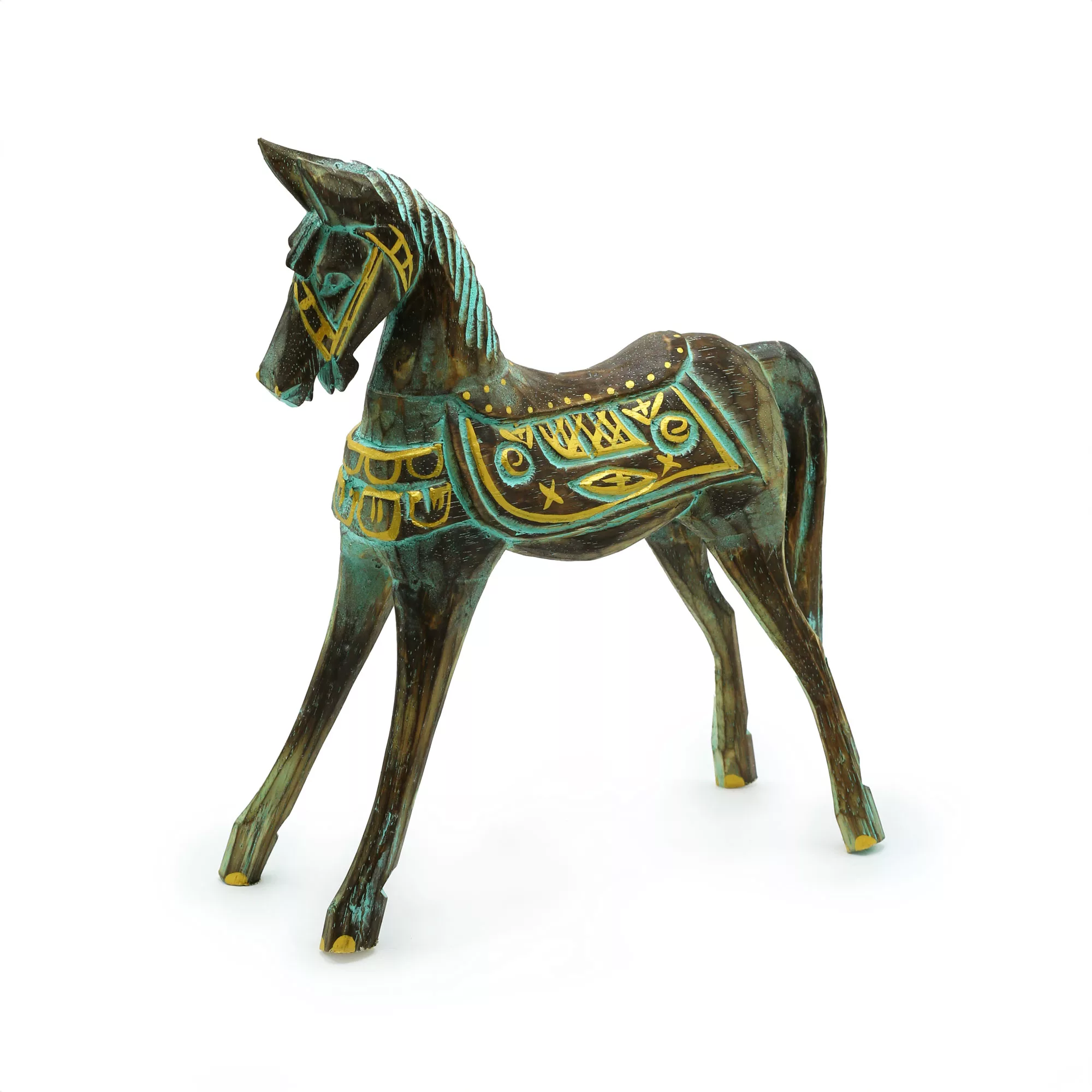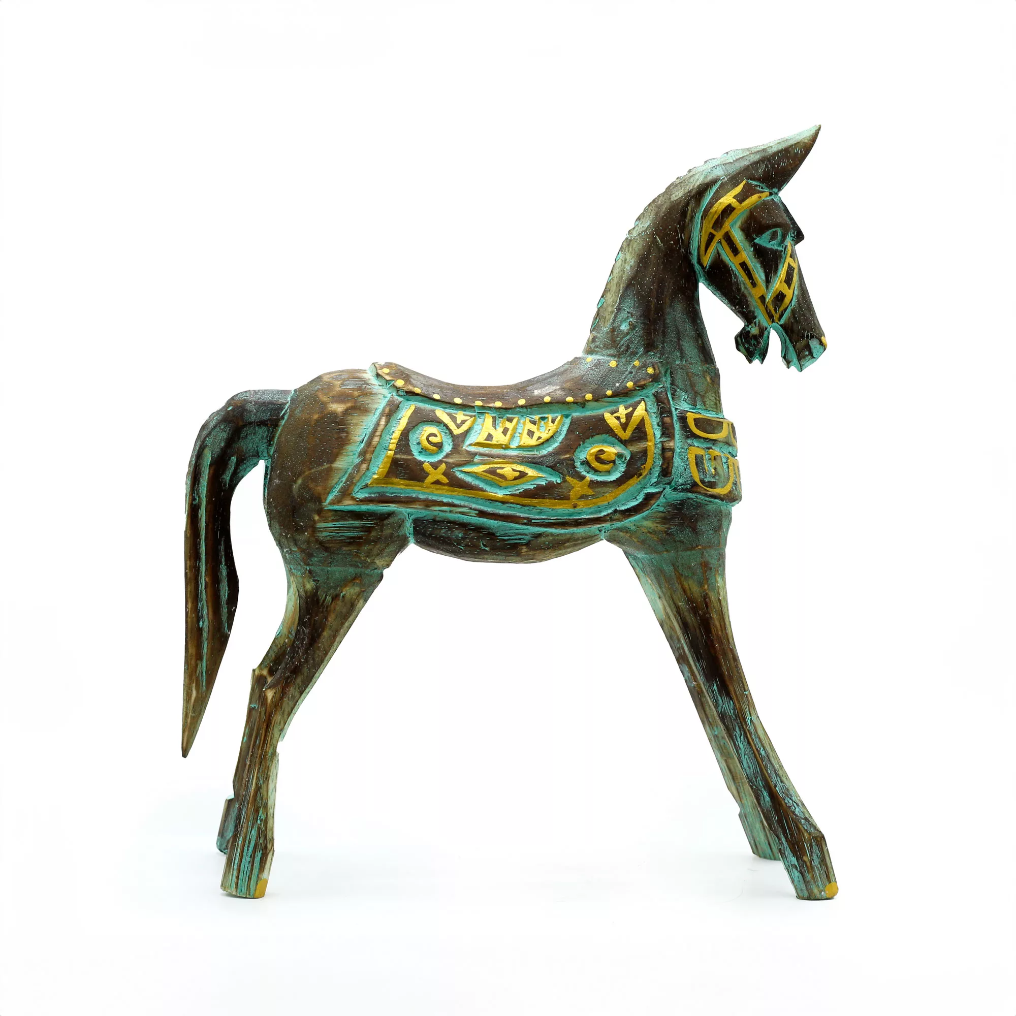 Medium Gold & Turquoise Horse 25 cm