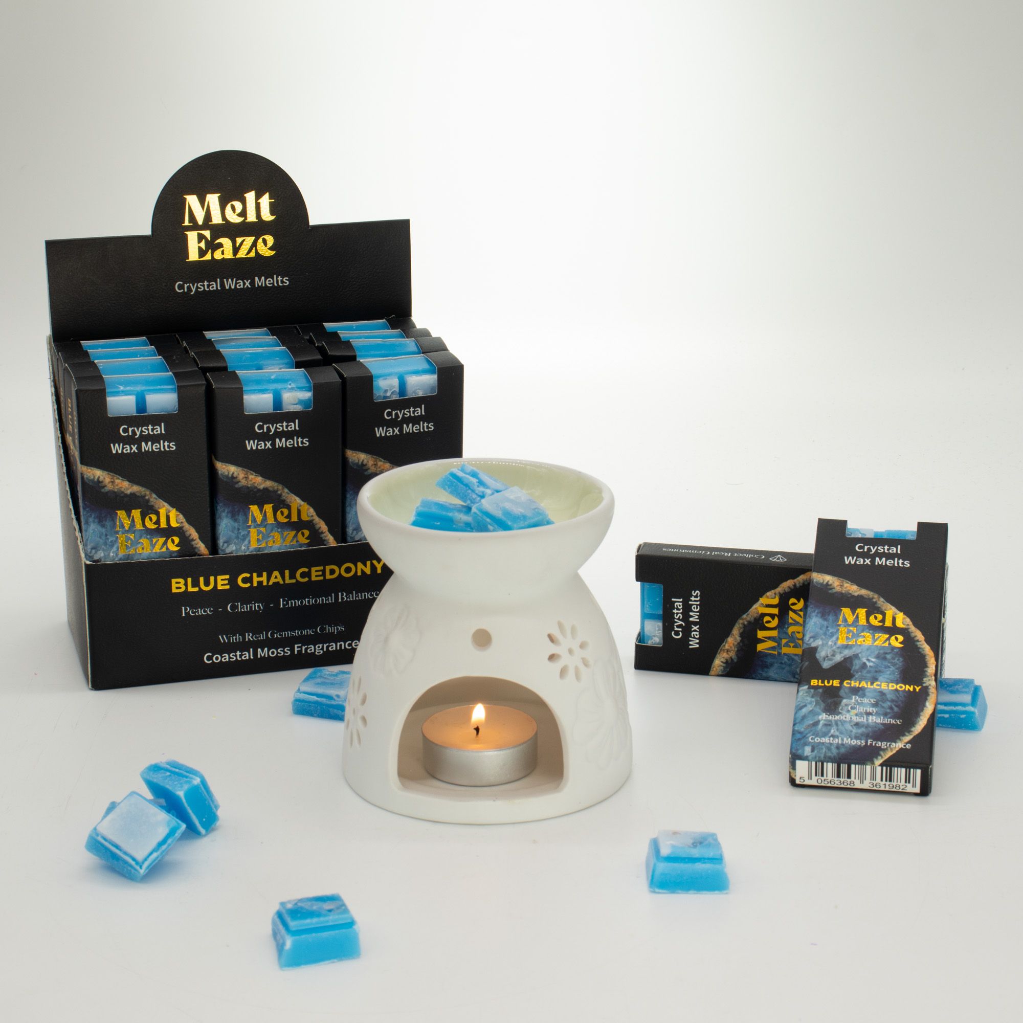 Refresh your space with MeltEaze Aquamarine Wave Wax Melts. Featuring cool blue tones and a clean coastal moss fragrance, this blend is inspired by Blue Chalcedony, often associated with peace, clarity, and emotional balance.