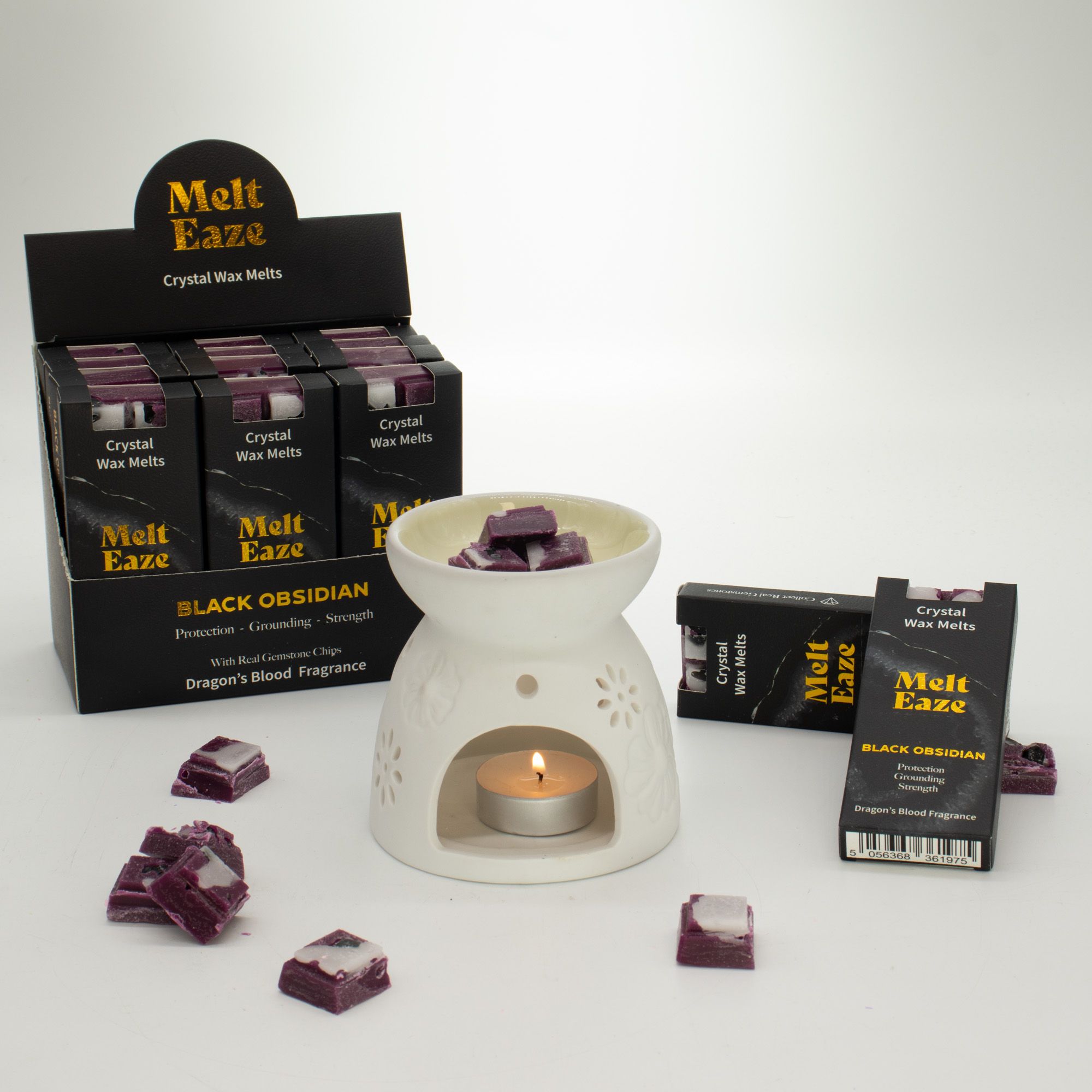 Create a deeper, more grounding atmosphere with MeltEaze Obsidian Shield Wax Melts. Featuring rich, dark tones and a bold Dragon’s Blood fragrance, this blend is inspired by Black Obsidian, often associated with protection, grounding, and inner strength.