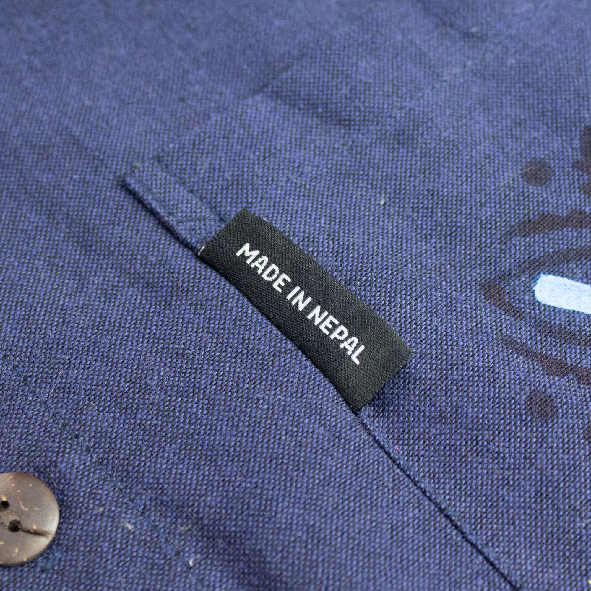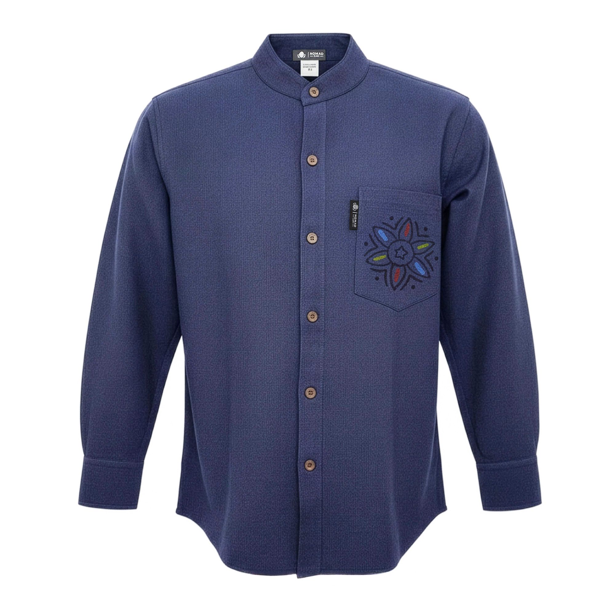 The Nomad Sari Kathmandu Shirt in Indigo features a timeless collarless design with a hand-painted pocket detail that adds subtle personality. The rich indigo colour gives the shirt a clean, versatile look suited to both casual and smart-casual outfits.