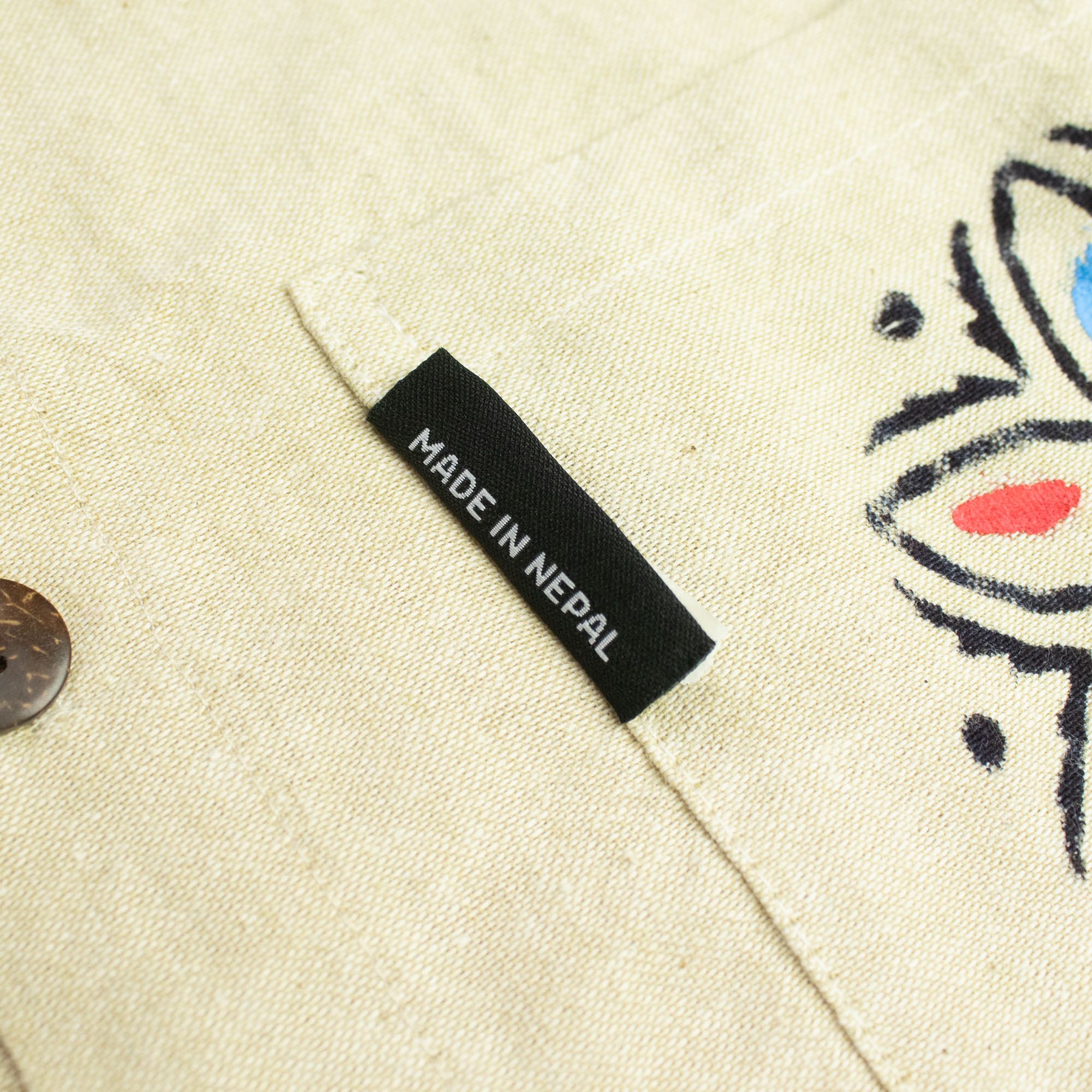 The Nomad Sari Kathmandu Shirt in Stone blends simple design with subtle artisan detail. The collarless cut and hand-painted pocket create a relaxed yet distinctive look, while the neutral colour keeps it versatile.