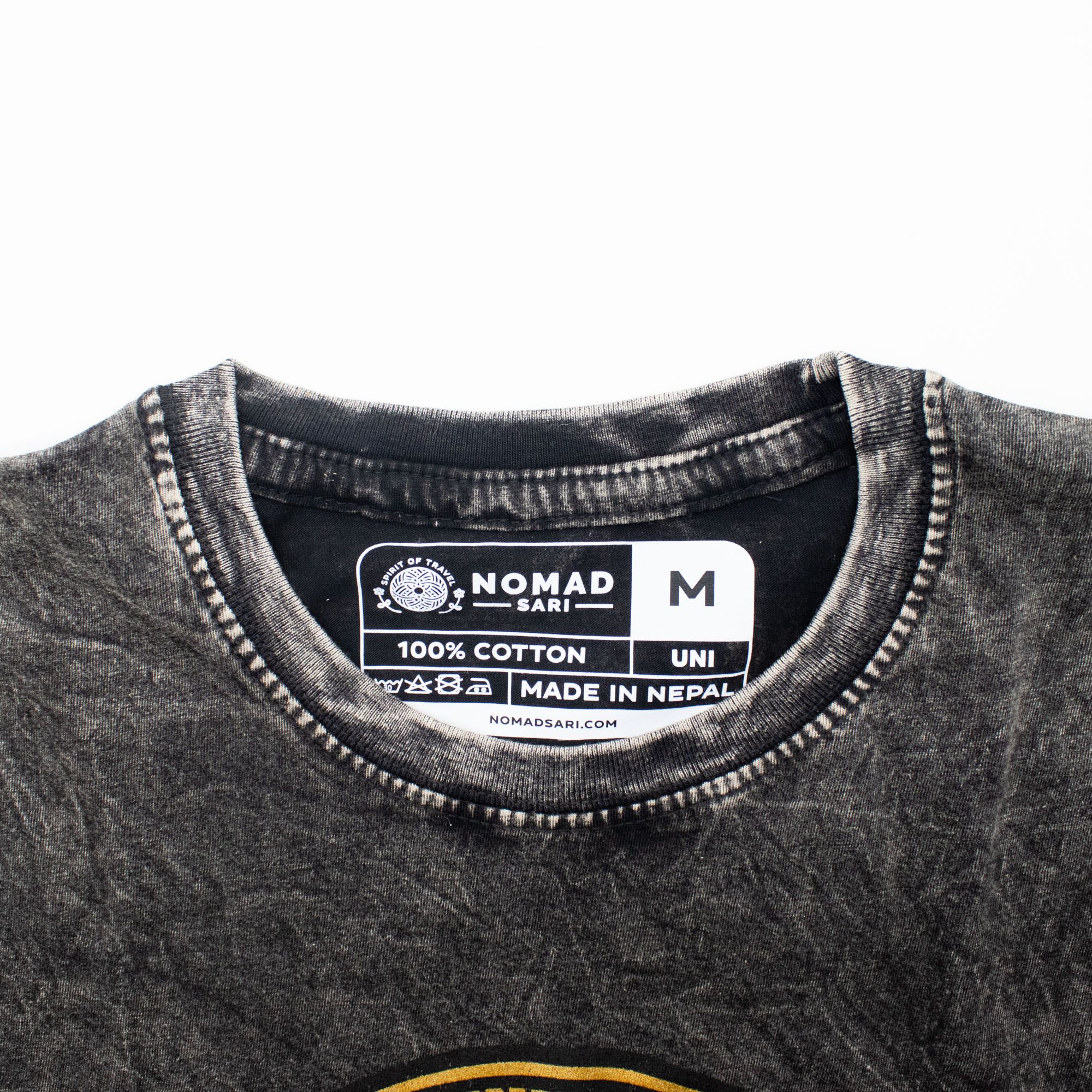 Add a bold, laid-back edge with the Nomad Sari Stonewashed Cotton T-Shirt in Charcoal. The Rebel design stands out against the vintage stonewashed fabric, creating a distinctive yet relaxed look.